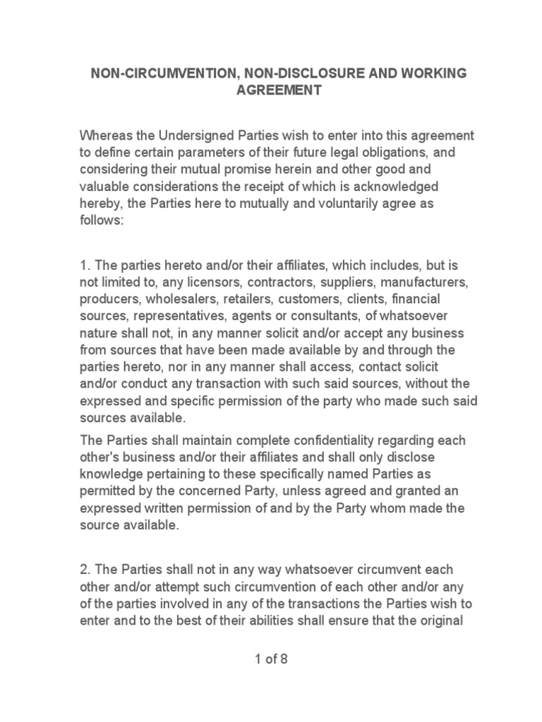 NonCircumvention, NonDisclosure and Working Agreement PDF