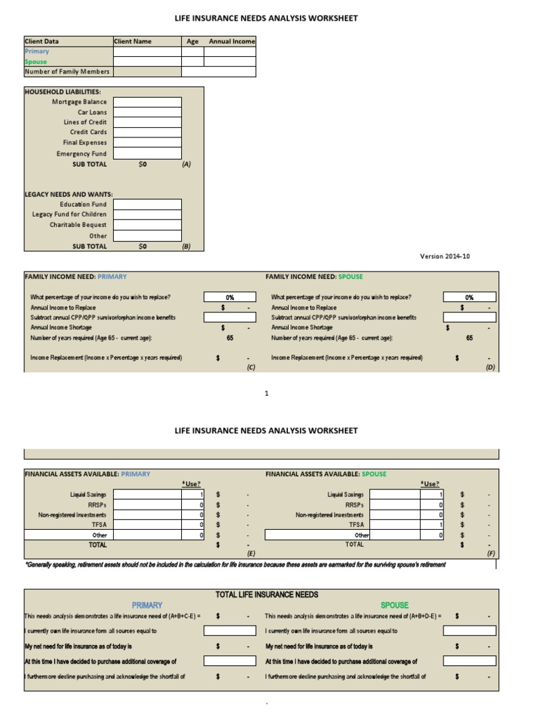 Life Insurance Needs Analysis Worksheet Excel Universal Network